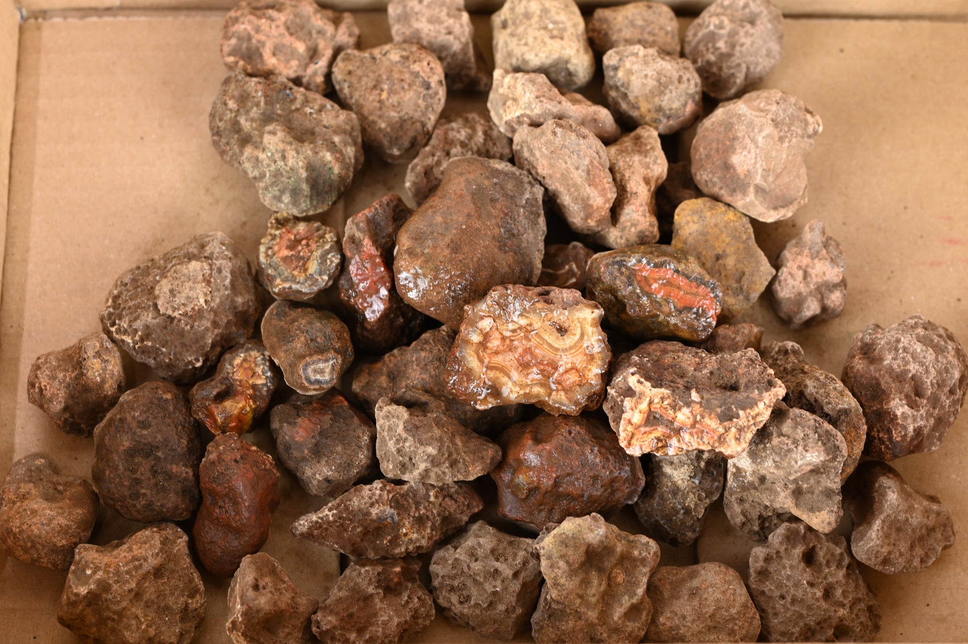 Die Achate sind überwiegend klein, aber haben mit die knalligsten Farben, die in der gesamten Fundregion vorkommen.